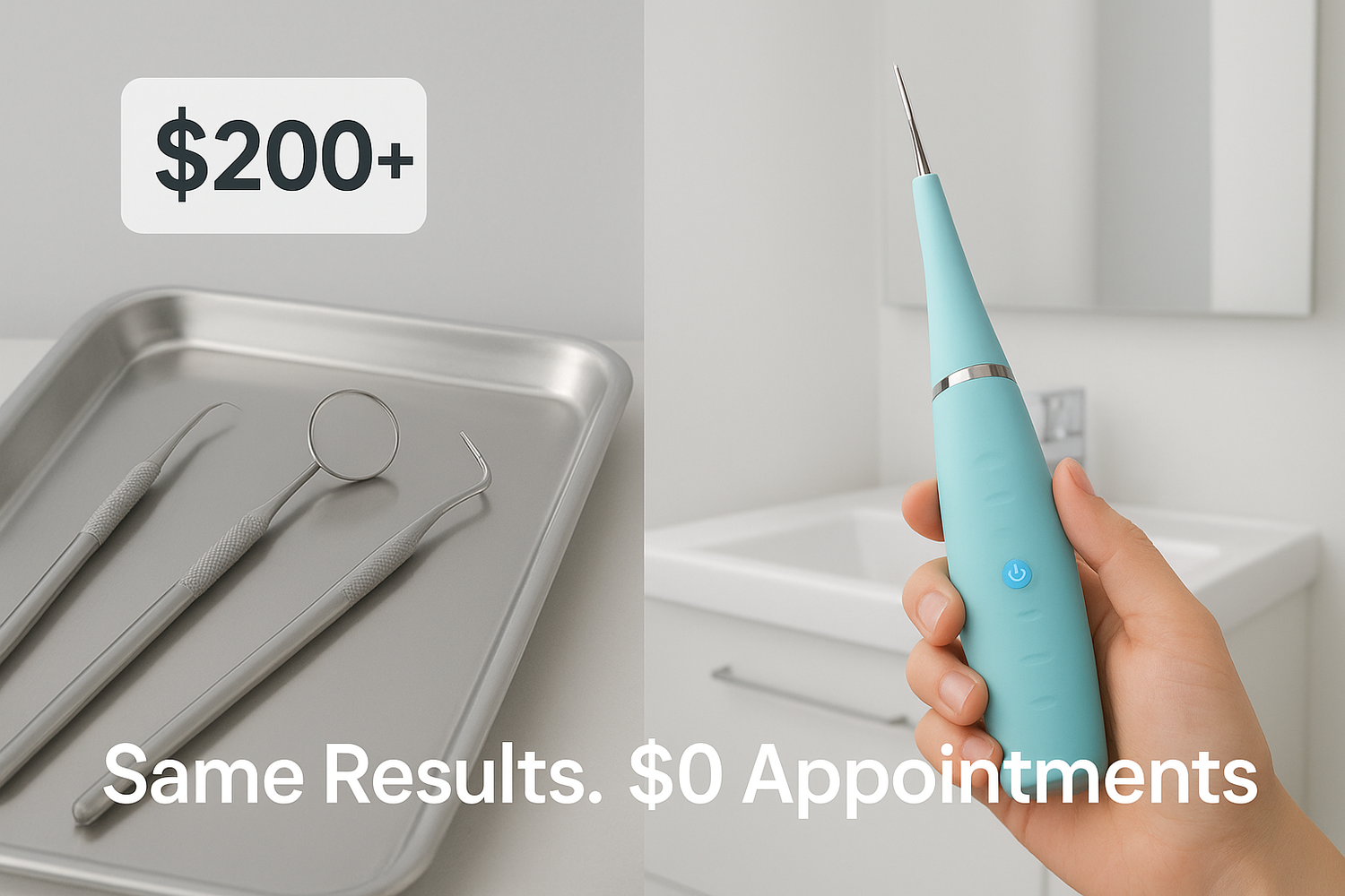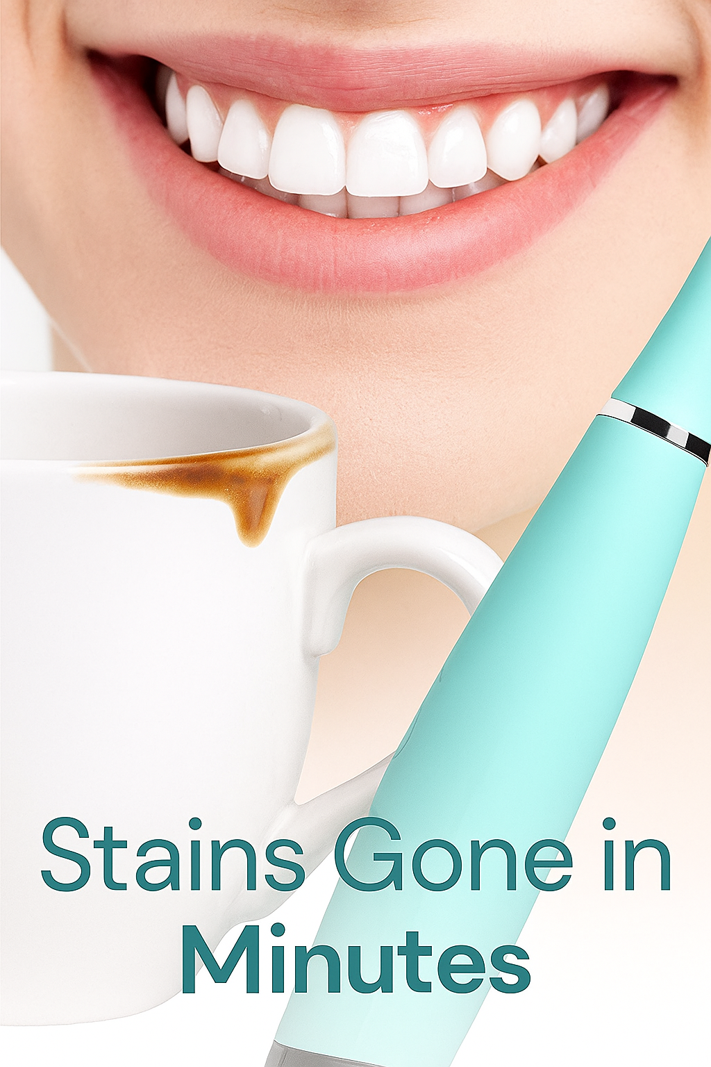 Coffee, tobacco, or tea stains? This tool lifts them in minutes — no appointments, no scraping tools in your mouth. Its ultrasonic vibrations gently polish enamel while protecting gums.