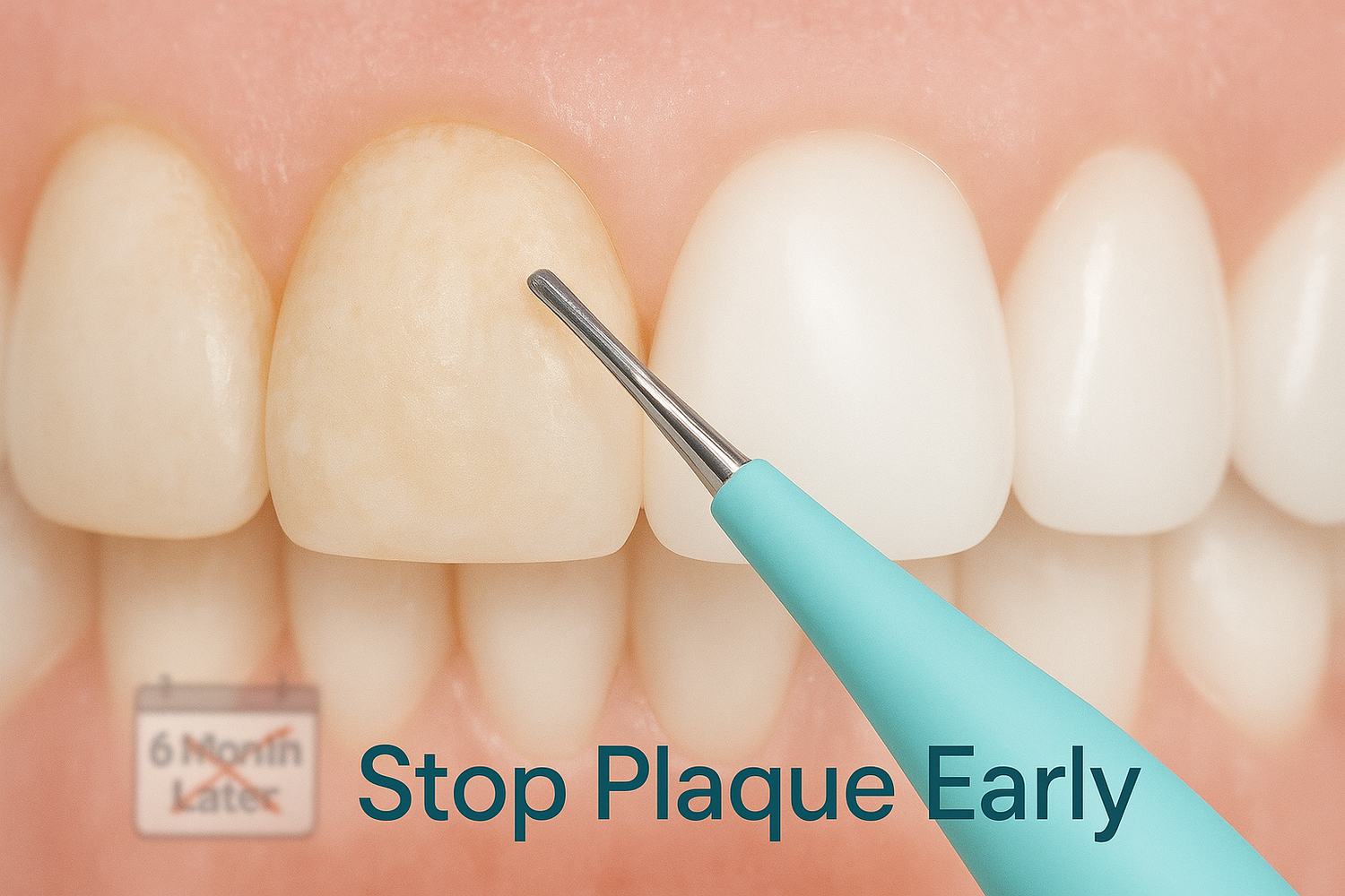 Plaque buildup can harden fast. Instead of waiting six months for a cleaning, customers now maintain cleaner teeth weekly at home — preventing bad breath, yellowing, and gum irritation.